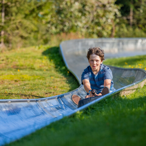 Durch Kurven, über Brücken und Jumps sausen Gäste mit der Sommerrodelbahn 700 Meter rasant ins Tal hinunter. Lauter Überraschungen hält das Erlebnisgelände neben der Rodelbahn Winterberg bereit - Abenteuergolf, Trampolin, Kindercars, Mini-Bagger. Die Kids können sich auf Kappi's Spielplatz ordentlich austoben. Kappi das Eichhörnchen ist treuer Wegbegleiter für die Kleinen bei ihren Entdeckungen.