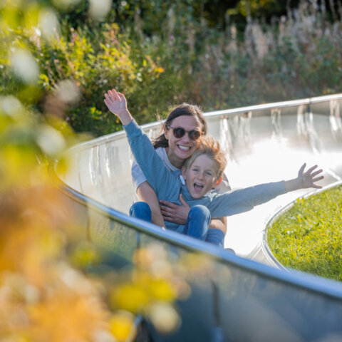 Durch Kurven, über Brücken und Jumps sausen Gäste mit der Sommerrodelbahn 700 Meter rasant ins Tal hinunter. Lauter Überraschungen hält das Erlebnisgelände neben der Rodelbahn Winterberg bereit - Abenteuergolf, Trampolin, Kindercars, Mini-Bagger. Die Kids können sich auf Kappi's Spielplatz ordentlich austoben. Kappi das Eichhörnchen ist treuer Wegbegleiter für die Kleinen bei ihren Entdeckungen.